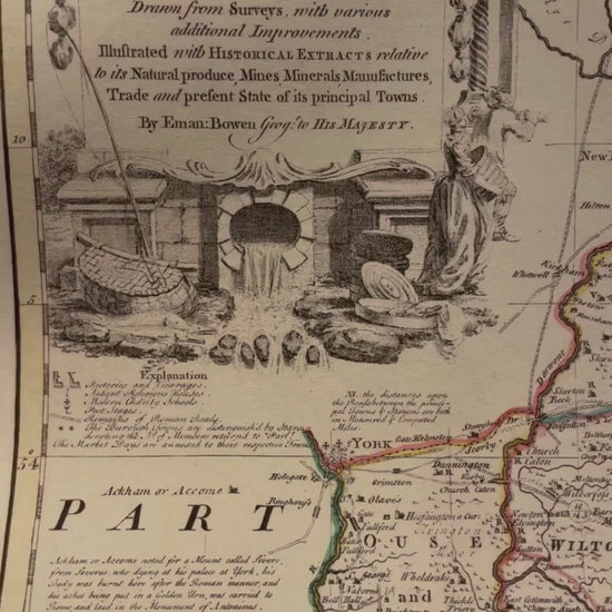 Celebrate Yorkshire’s coastal charm with this beautifully detailed 1755 map of the East Riding. With its fine engraving, decorative cartouche and historic place names, it captures the county as 18th-century map-maker Emanuel Bowen saw it – full of ports, market towns and winding roads leading to the sea. It’s a perfect piece for proud Yorkshire folk, local history fans or anyone who loves antique maps with real character.