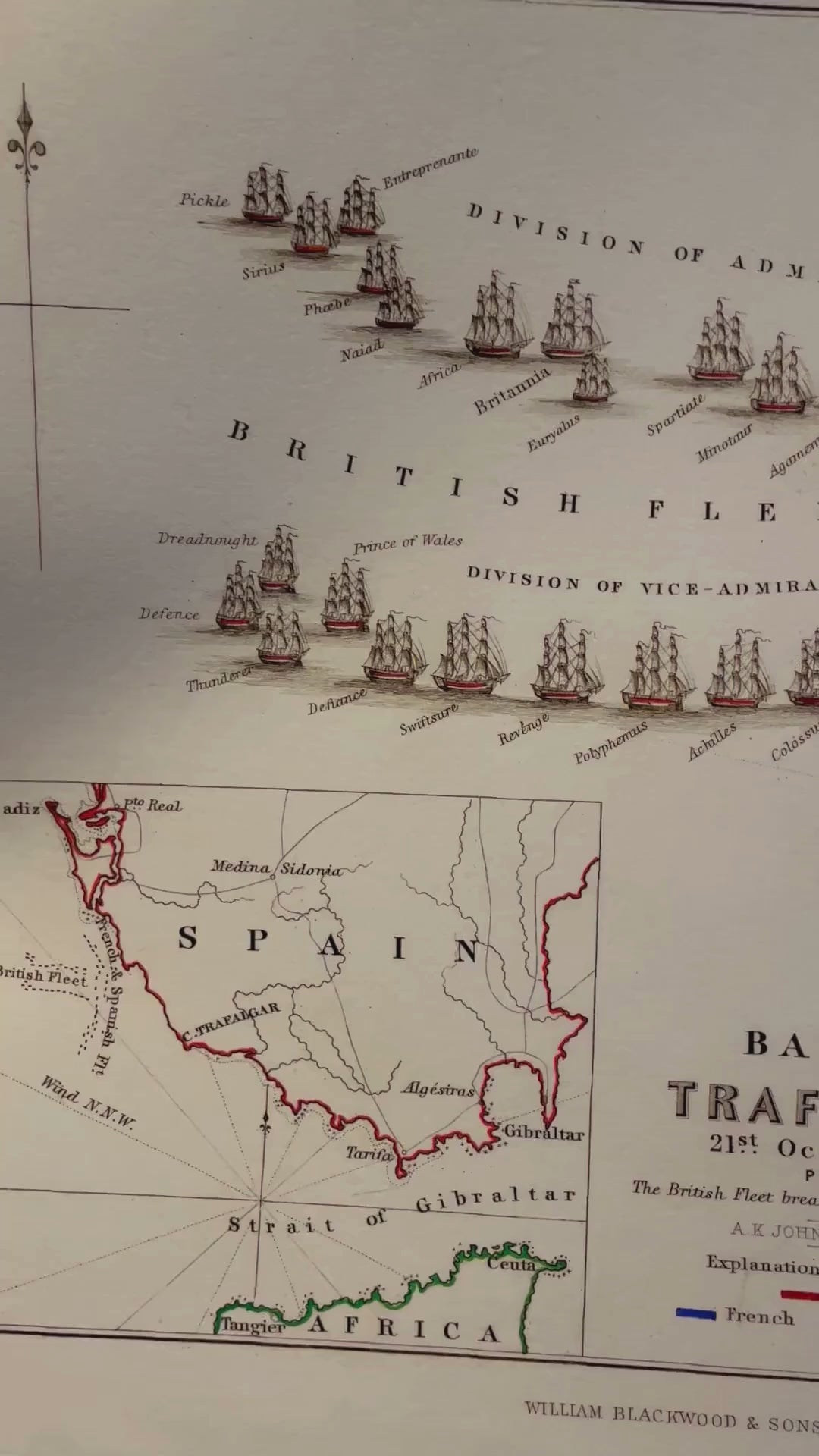 Battle of Trafalgar Map showing positions in Battle