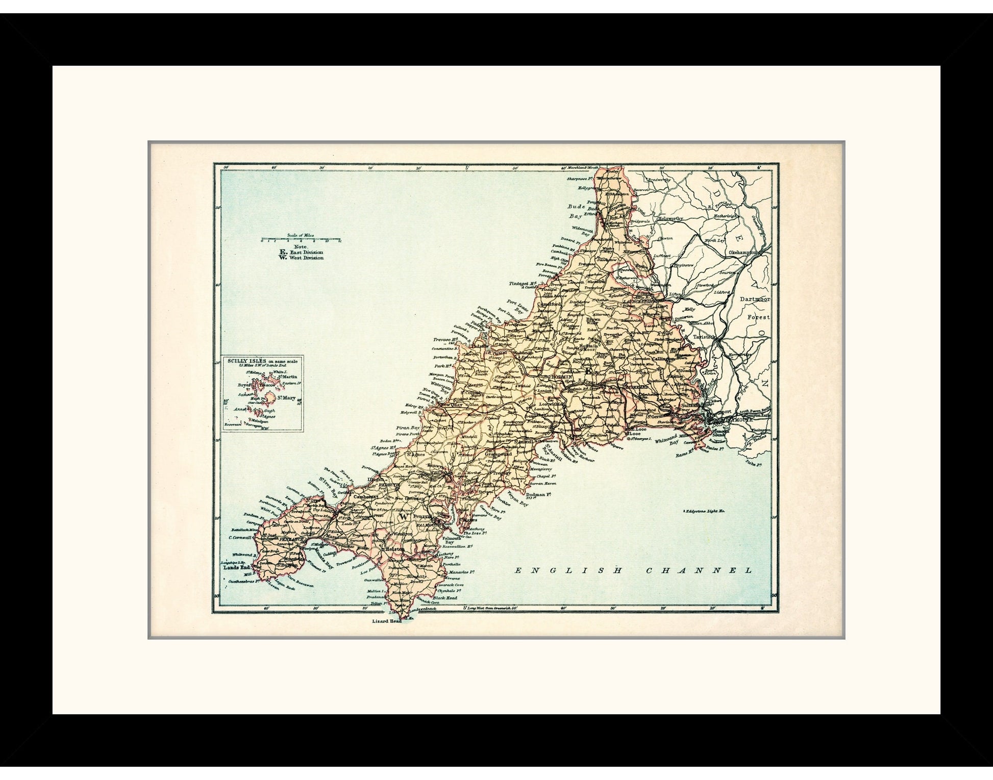 Cornwall Map Antique Reproduction