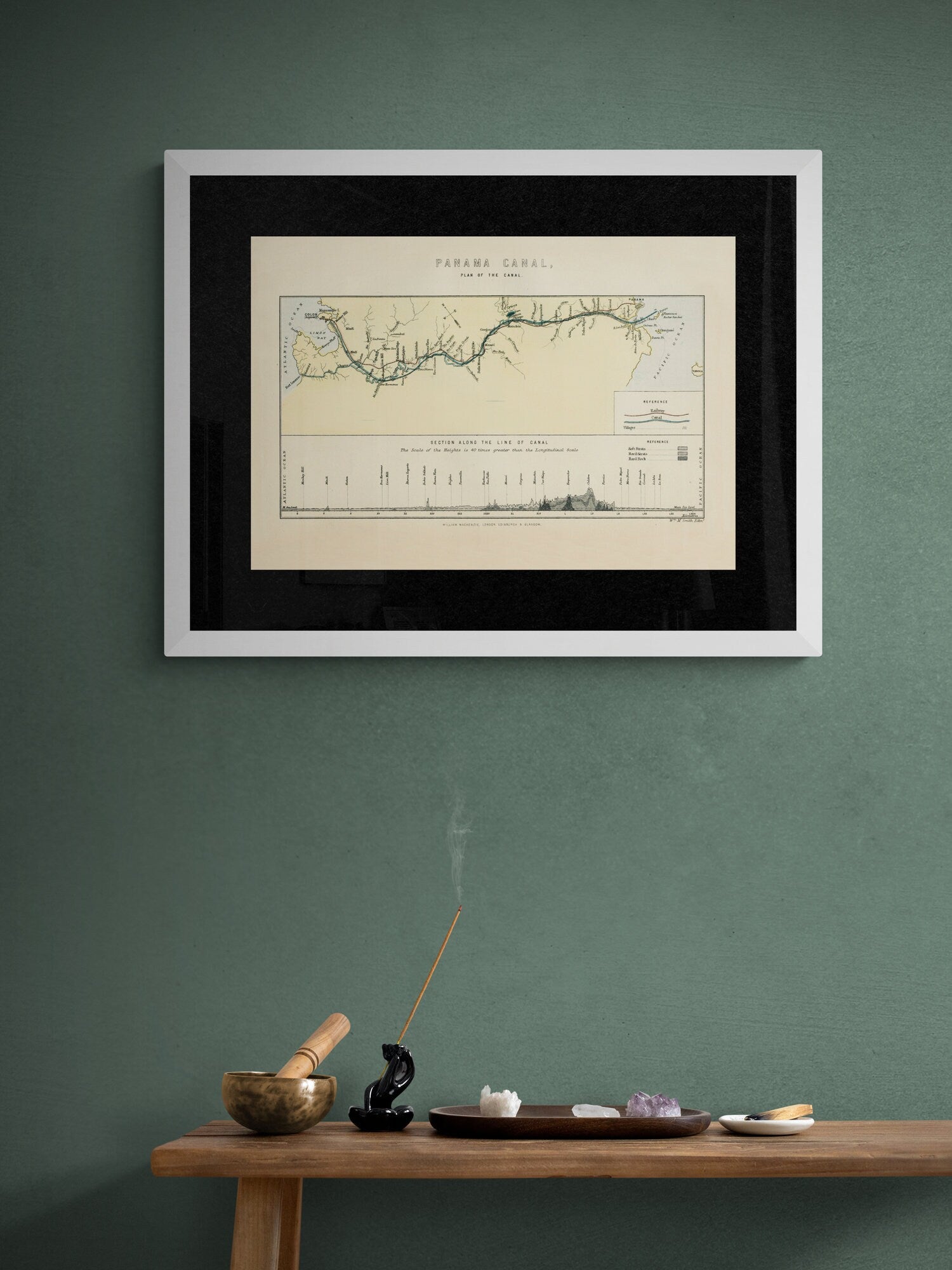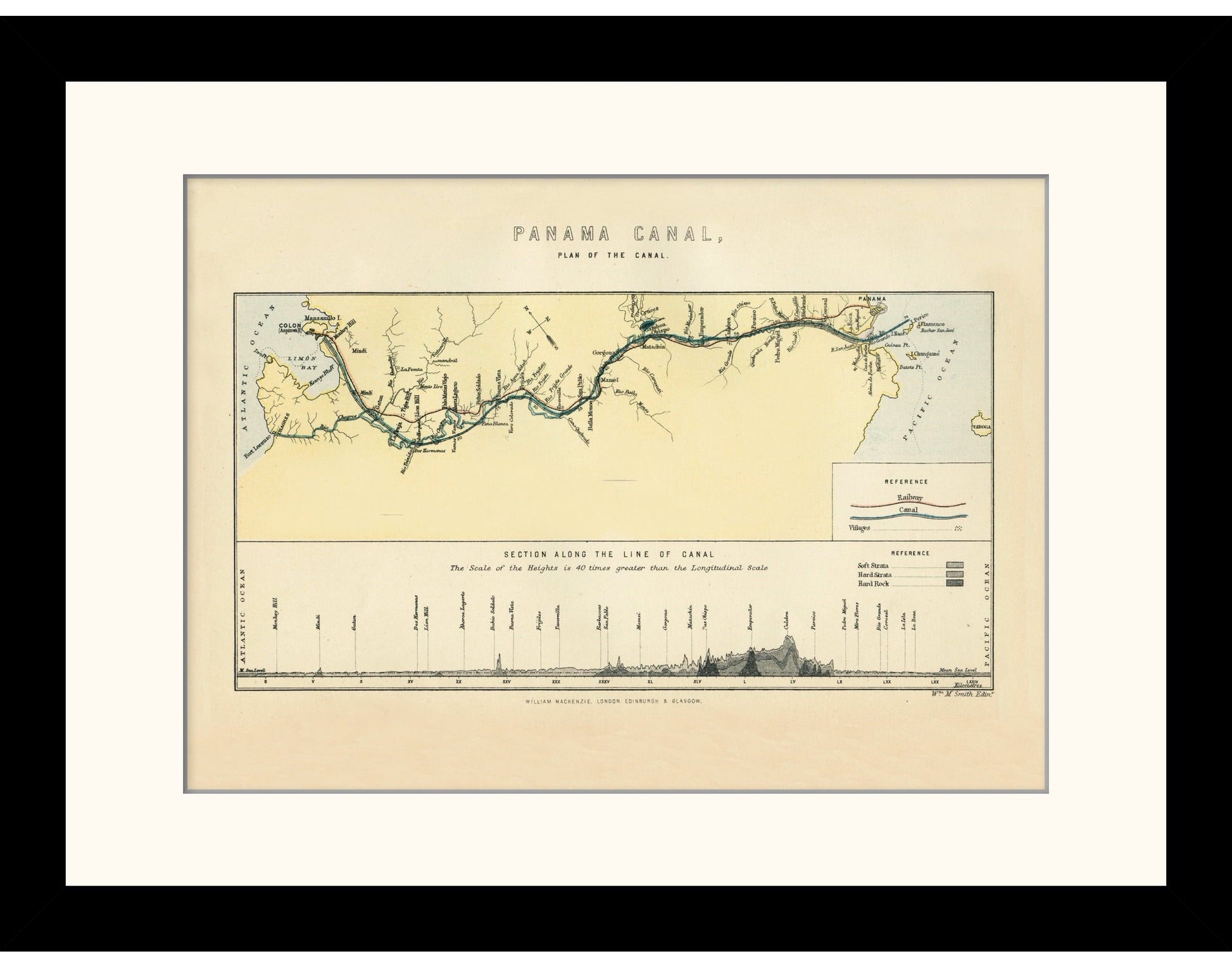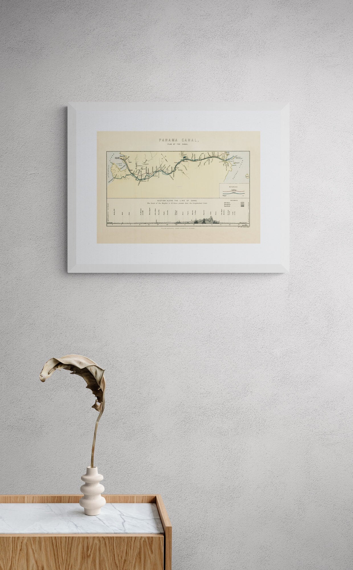 This vintage reproduction of Plan Of The Panama Canal Showing Railways, Villages And Rock Sections Along The Canal is a faithful representation of an original 19th-century engraving — perfect for classic interiors and collectors of antique-style wall art.